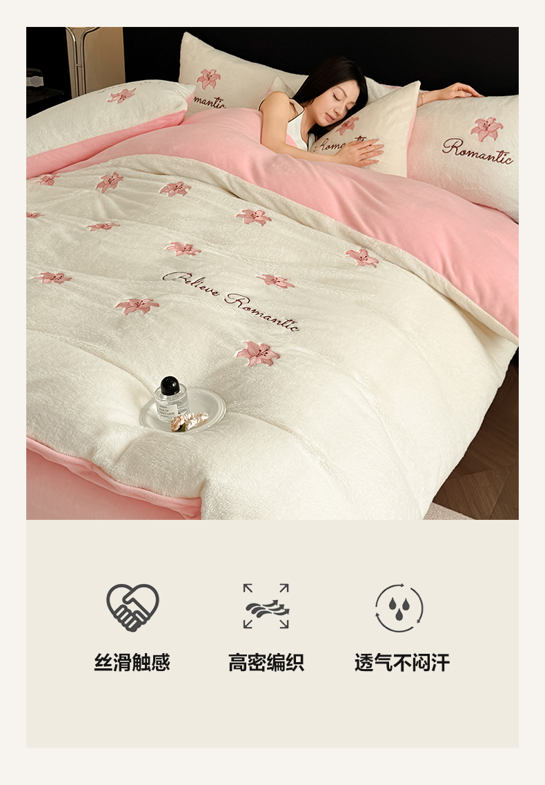 2025新款A类新款兔毛烂花牛奶绒绣花四件套