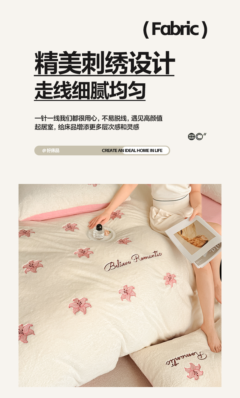 2025新款A类法式拼接绣花兔兔绒牛奶绒四件套